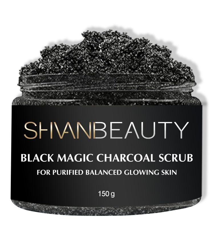 BLACK MAGIC EXFOLIATING CHARCOAL SCRUB is an Activated Charcoal scrub that fights blackheads, acne, and enlarged pores. This unique scrub removes dirt deep into the pores and exfoliates the skin. It has a refreshing, cooling effect which is enriched with anti-oxidants to prevent visible signs of aging.