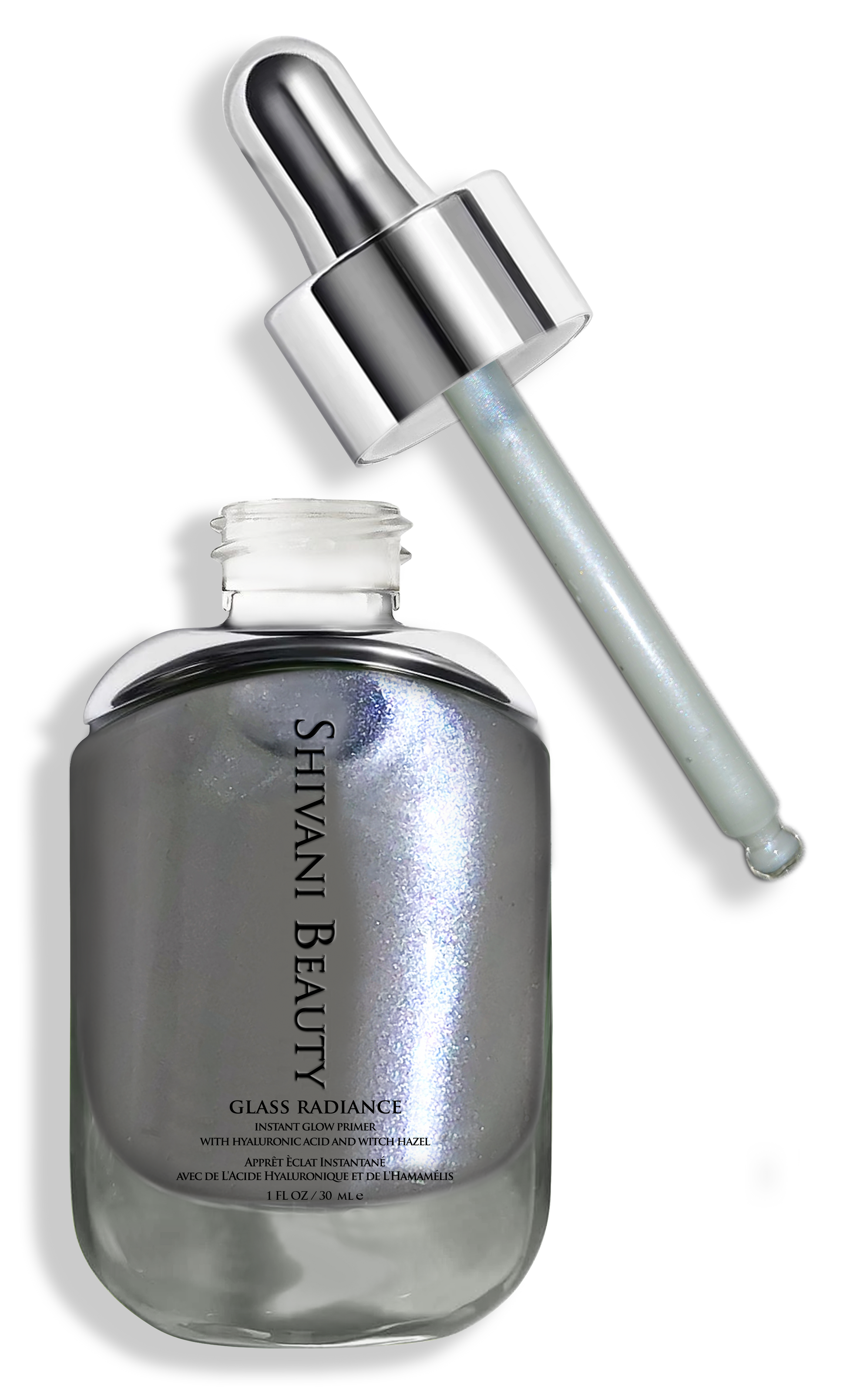 GLASS RADIANCE FACIAL SERUM is a multipurpose Hybrid formula, that is both a Primer and Highlighter in one. Engineered and inspired by Korean Beauty trends, GLASS RADIANCE leaves skin plumped, youthfully supple, with an elastic bounce, and radiant candescent glow, just like glass. Our unique formula is infused with Hyaluronic Acid, Witch Hazel, Plant-Derived Squalane, Orange Oil, Grapefruit Oil, and Black Currant Seed Oil.