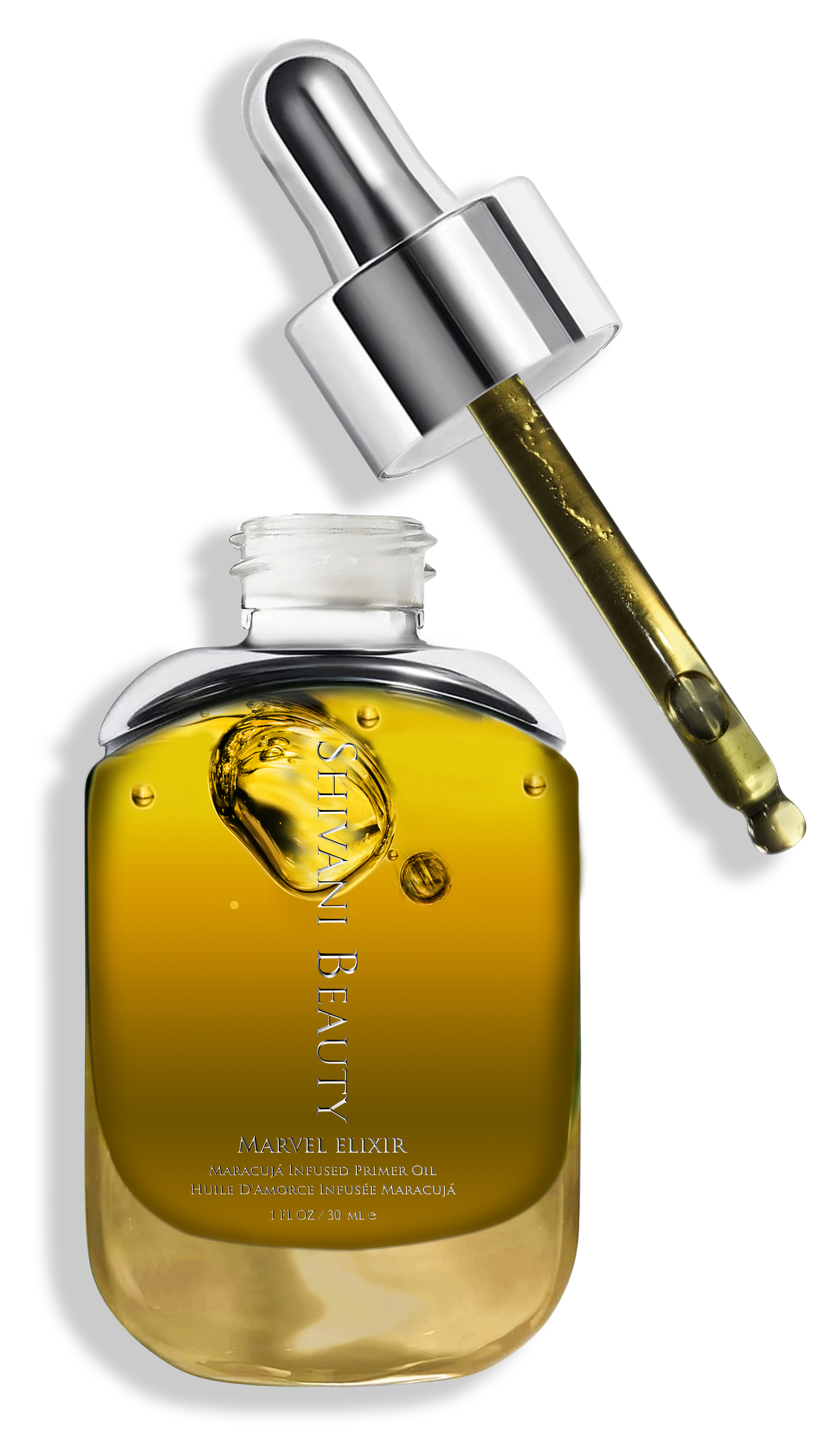 MARVEL ELIXIR LUXURY BEAUTY OIL is a multipurpose Hybrid formula, that is both a Primer and Beauty Oil in-one. Fast-absorbing and light-weight properties assist in delivering firmer, plumper, and more youthful-looking skin for a hydrated, radiant, and flawless complexion. Our pure, powerful, and potent combination of globally sourced natural specialty oils is so invigorating that it will make you feel like you were born this way. This magical blend of luxurious oils such as Passion Fruit (Maracujá) Oil, Pumpkin Oil, Rosehip Oil, Safflower Oil, and Jojoba Oil, not only provide moisturizing and antioxidant benefits but instantly flood your skin with hydration upon application leaving your skin soft and ultra-smooth, glowing with translucency and head-turning radiance. In addition, your skin’s natural collagen and overall firmness are both dynamically boosted helping soften the look of emerging lines and wrinkles while blurring flaws, reducing fine lines, and making pores vanish - all for gorgeous, porcelain-like skin. Makeup not only goes on better but also lasts longer. Use with or without makeup, completely up to you.